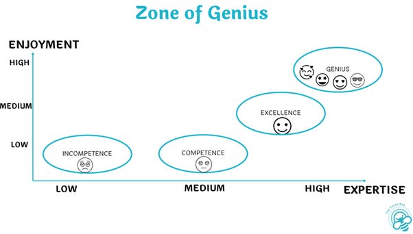 All the experts in the world are working in their Zone of Genius. It is not possible to deliver such incredible high standards in any field, while only being in your Zone of Excellence.